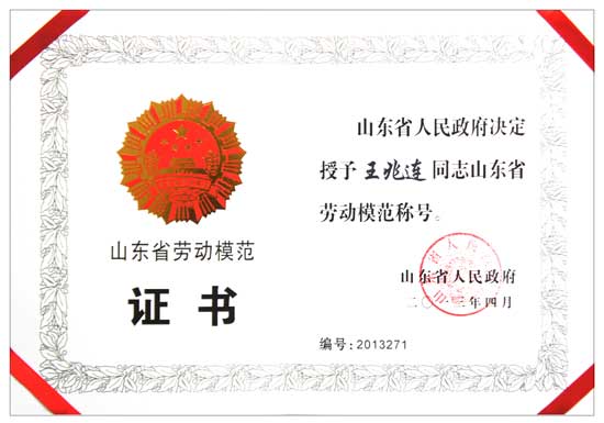 熱烈祝賀公司董事長兼總經理王兆連被山東省人民政府授予山東省勞動模范