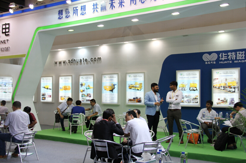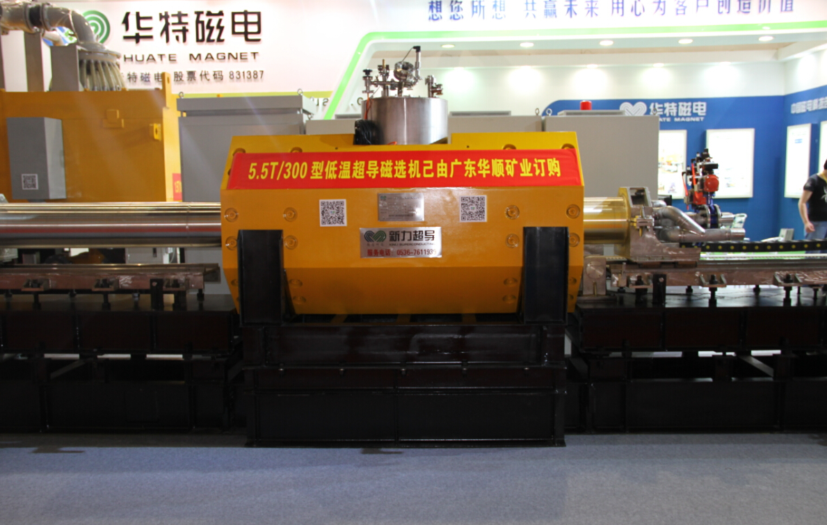 為參加本次展會,我公司精心準(zhǔn)備了5.5T/300型低溫超導(dǎo)磁選機(jī)和1.5T/1000型電磁漿料磁選機(jī)兩臺工業(yè)用磁選機(jī),不遠(yuǎn)千里,歷時兩天從濰坊運至廣州展會現(xiàn)場,成為本次展會上磁選除鐵裝備的最大亮點。