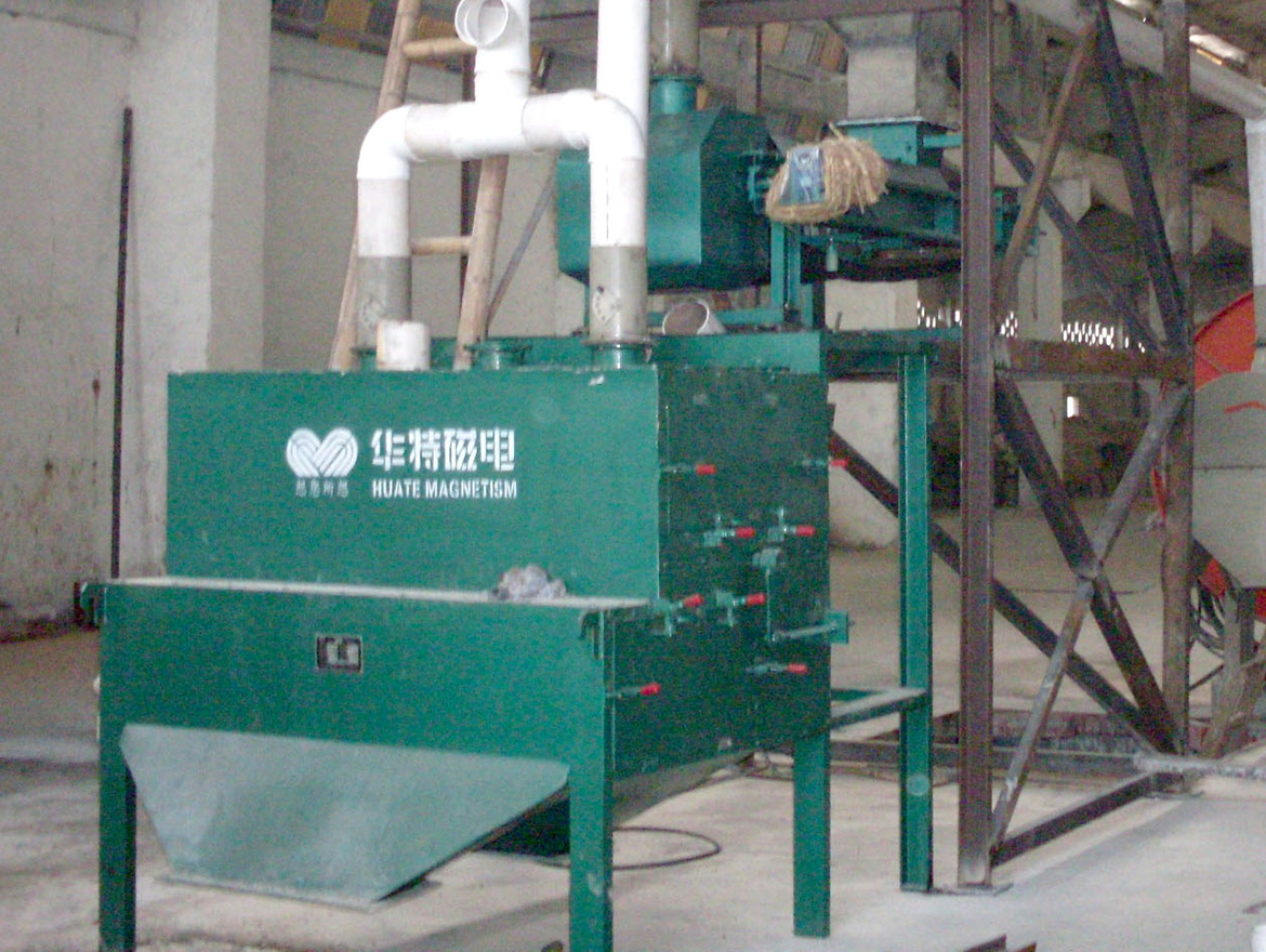 用于細(xì)顆粒或粗粉狀物料中清除弱磁性氧化物,廣泛應(yīng)用于化工、耐火材料、玻璃、陶瓷等非金屬礦的干式除鐵,赤鐵礦、褐鐵礦的干式預(yù)選以及錳礦的干法選礦